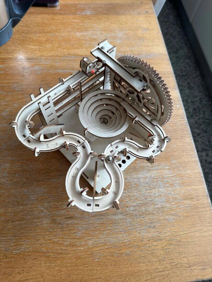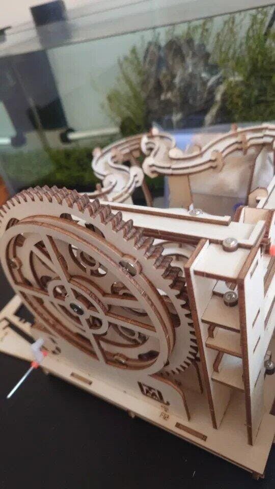 Explore hands-on construction with the Mechanical Wooden Marble Run, a detailed 3D puzzle designed for those who enjoy working with their hands. Made from laser-cut wooden pieces, this engaging model includes tracks, gears, and spirals that create a smooth and dynamic marble flow once assembled.
